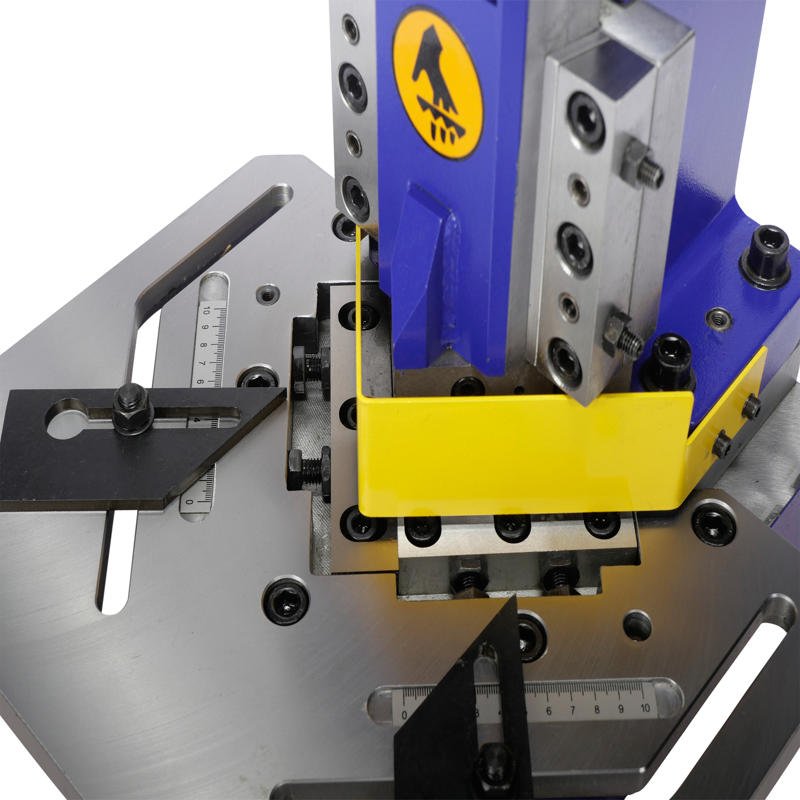 Met behulp van deze Cowley uithoekpers kan gemakkelijk de gewenste hoek uit een plaat geknipt worden. De machine kan knippen tot een dikte van 3mm.
