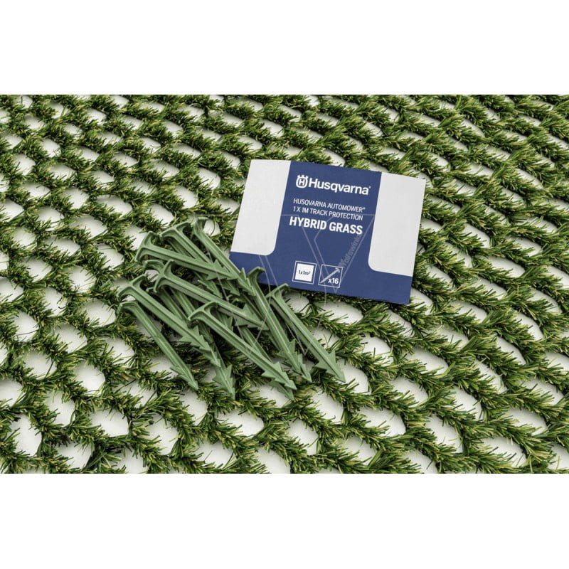 Voorkom dat de robotmaaier stopt, ronddraait en het gazon verslijt op hellingen of veel voorkomende plekken waar de mogelijkheden voor variatie van de afstand tot de voerdraad beperkt zijn. 1×1 meter hybride gras inclusief 16 groene klemmen