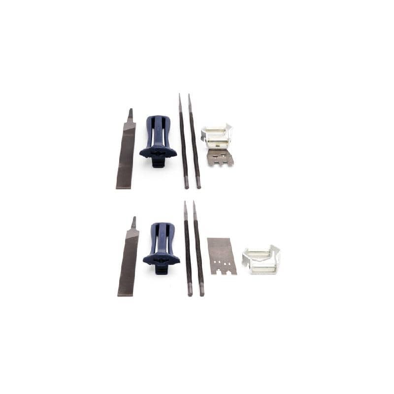 Complete vijlkit om het werk simpeler te houden. Met een correct geslepen ketting, zult u veiliger en comfortabeler werken. De vijlkit bestaat uit een vijlhandvat, combimal of vijlmal met een dieptesteller, twee ronde vijlen en een platte.