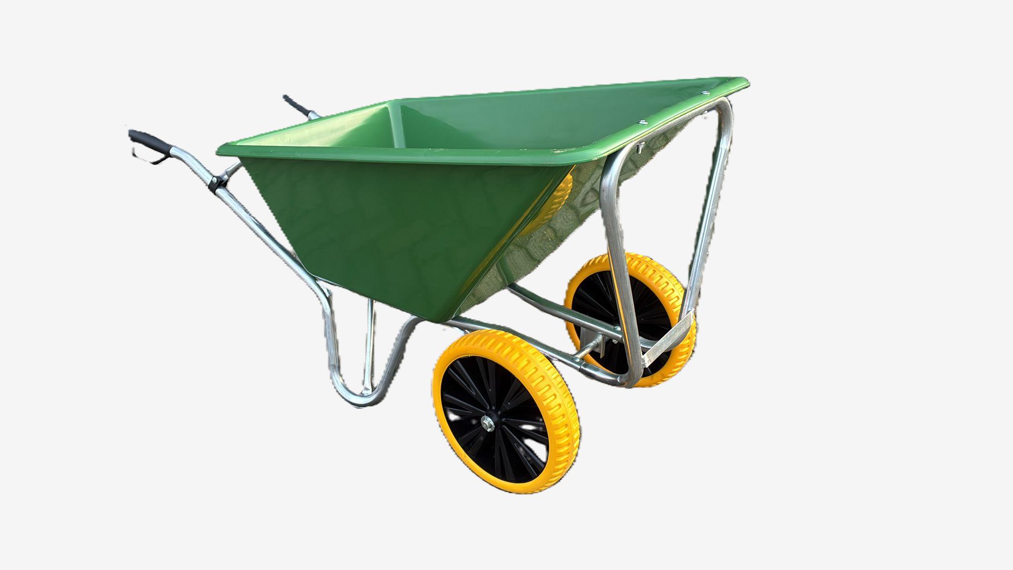 Dankzij de dubbele wielconstructie blijft de kruiwagen stabiel, zelfs bij maximale belading, en is hij eenvoudig te manoeuvreren op uiteenlopende ondergronden.
