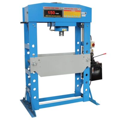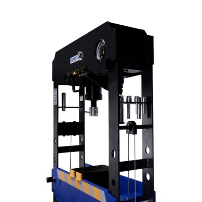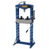 Pers / garagepers / lagerpersDeze Mammuth werkplaatspers is van hoogwaardige kwaliteit en zeer stabiel dankzij het volledig afgelaste zware frame. Het werkbed is met behulp van de handlier makkelijk handmatig in hoogte verstelbaar. De pers is te bedienen met de hendel en pomp (heeft twee snelheden) en met een voetpedaal op perslucht. De hydraulische cilinder is in de breedte (gelagerd) verplaatsbaar en is voorzien van een in hoogte verstelbare, 7,5cm lange spindel. Via de geïntegreerde manometer wordt de persdruk afgelezen.Wordt geleverd inclusief 2 zware persblokken, 8 perspennen en een onderdelen bak.Technische specificaties  capaciteit = 30 ton  cilinder slag = 220mm  bedbreedte = 750mm  beddiepte = 187mm  werkbereik = 830mm  werkdruk = 8 – 12 bar  luchtaansluiting = 1/4″ NPT uitwendige schroefdraad