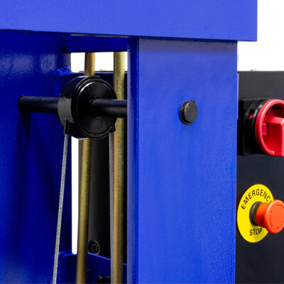 De pers wordt standaard geleverd inclusief een veiligheidsrooster, voetpedaal, noodstop en twee persblokken.