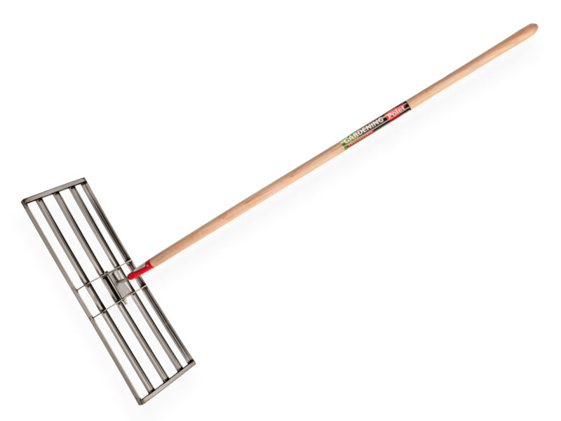 Door het grote formaat gaat egaliseren sneller en nauwkeuriger dan met een standaard tuinhark of asfalthark.