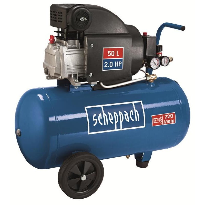 Scheppach HC54 luchtcompressor met een tank van 50 liter. Bij het maken van het design is gedacht aan de hobbyist, de doe-het-zelver en de semi-professional. De compressor levert een fantastische combinatie van prestatie, veiligheid en prijs/kwaliteit verhouding. Kenmerken van deze compressor: